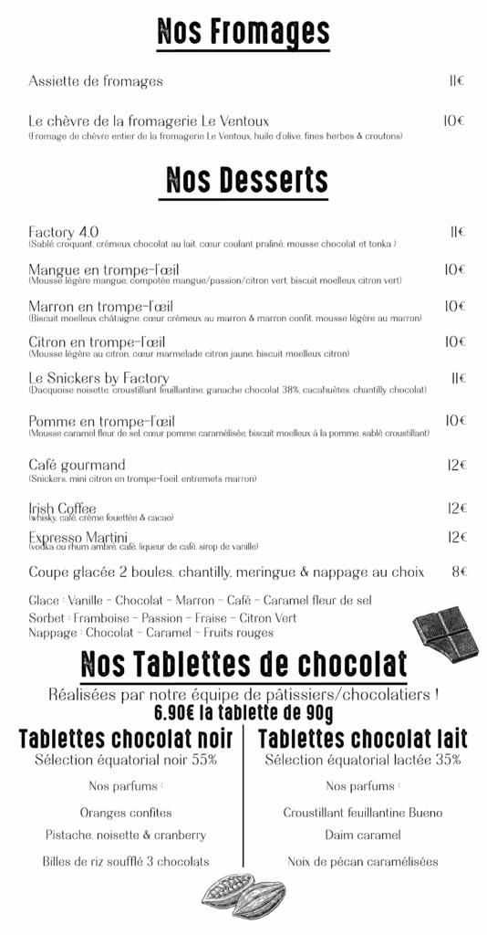 Restaurant Factory : Carte & menus du Restaurant Factory